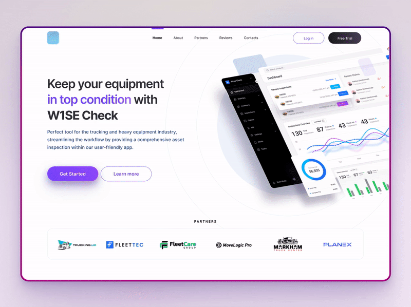 The design approach prioritized a clean and modern aesthetic with ample white space. Custom graphics and illustrations were created to showcase the application and reflect the truckers' and managers' working process.